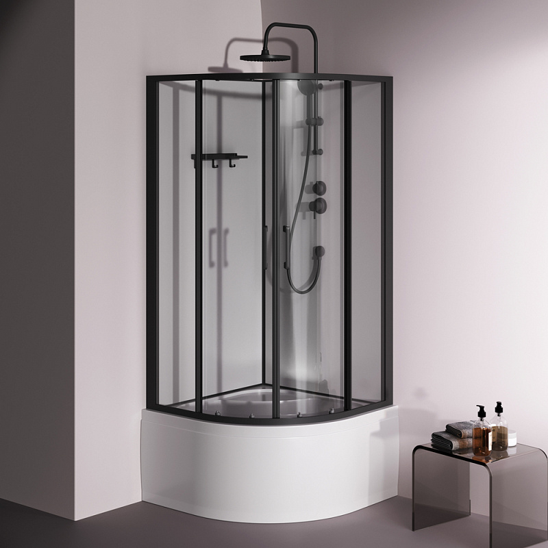 Душевая кабина 90x90 AM.PM Above W9XC-401-9090BT профиль черный матовый, низкий поддон