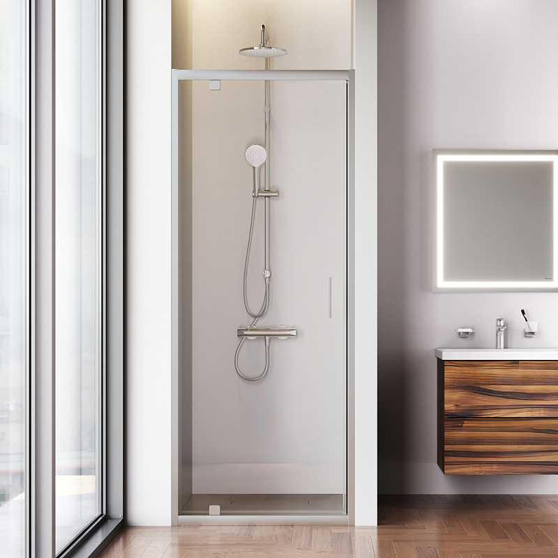 Душевая перегородка с дверью 80x195 AM.PM Gem W90G-80-1P-MT прозрачное стекло, профиль серебристый
