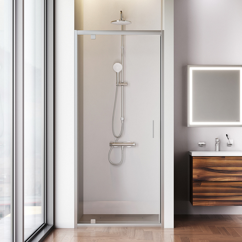Душевая перегородка с дверью 90x 195 AM.PM Gem W90G-90-1P-MT прозрачное стекло, профиль серебристый