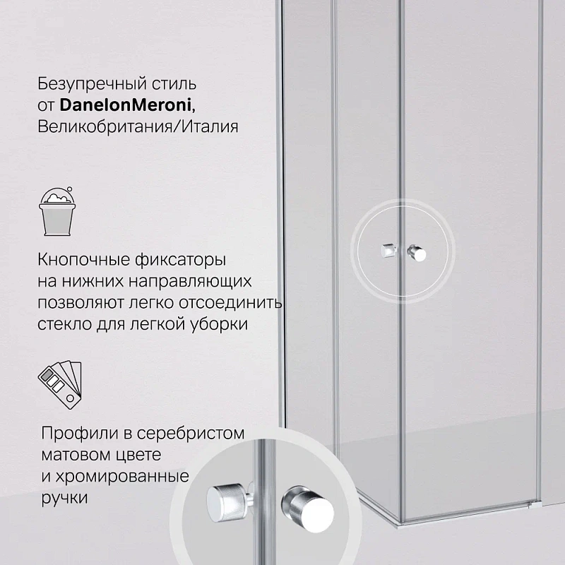 Надежные комплектующие, безупречный стиль и простой монтаж – все это про душевые ограждения AM.PM X-Joy. Тонкий контур окантовки, невесомый силуэт и отсутствие нижних профилей – продуманная функциональность от дизайн-бюро DanelonMeroni (Великобритания / Италия). Цвет профиля - серебристый. Размер (Ш/Г/В): 1000x1000x1950 мм. Материал ограждения - прозрачное стекло; алюминий. Толщина фиксированного стекла - 4 мм. Толщина стекла двери - 6 мм. Форма - квадратная.