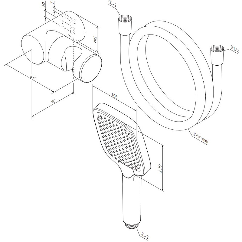 Душевой гарнитур AM.PM Func F0118F022 держатель, шланг, лейка 3 режима, черный