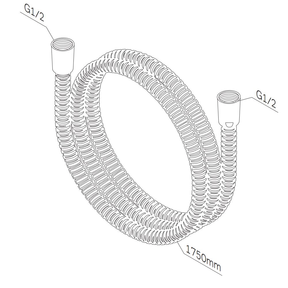 Душевой шланг от бренда АM.PM. Длина душевого шланга - 1750 мм. Материал изделия - нержавеющая сталь. Резьбовое соединение - G1/2.