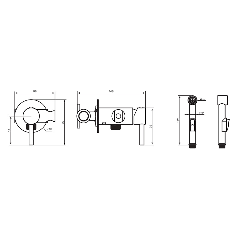 Встраиваемый гигиенический душ со смесителем Dorff Logic и шлангом 1500 мм. Встраиваемые смесители Logic немецкого бренда Dorff - функциональное решение для ванной комнаты. Размер (Ш/Г/В): 86x145x97 мм. Материал - латунь. Цвет - хром. 1 режим гигиенического душа - Spray.