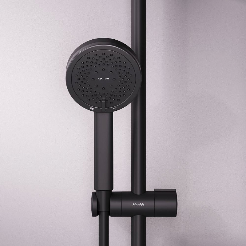 Лейка для душа от бренда АM.PM - олицетворение баланса форм и геометрии в линейке AM.PM. Коллекция Above играет с пропорциями, чтобы создать ощущение простора и лёгкости. В модели Above это выражено через круглую форму. Ручной душ разработан немецким агентством AM.PM, и отражает философию Above — максимум визуального эффекта без лишних деталей. Размер (Ш/Г/В): 108x31x232 мм. Цвет - черный.