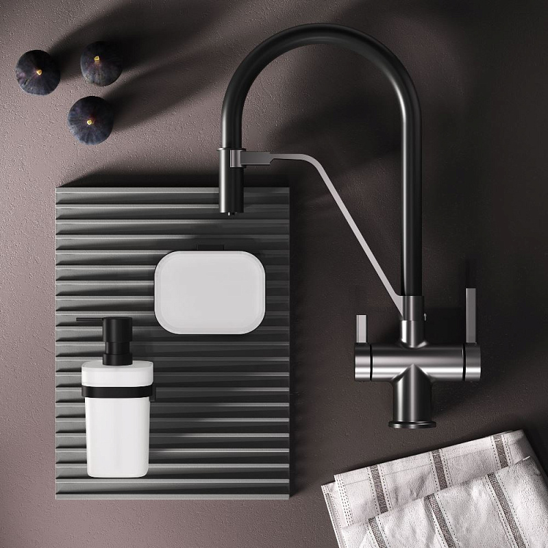 Товар Смеситель для кухни AM.PM Func F8F07812 высокий, сатин с каналом для питьевой воды и гибким черным изливом представлен в каталоге AM.PM на официальном сайте ampm-store.ru в России. Получите профессиональную консультацию в шоуруме Москвы на ул Клинская, д.6, ознакомьтесь с описанием, характеристиками, инструкциями, отзывами покупателей, рекомендациями производителя, чтобы выбрать и заказать лучшее из каталога сантехники AM.PM. Сделайте выбор – получить заказ с доставкой или самовывозом.