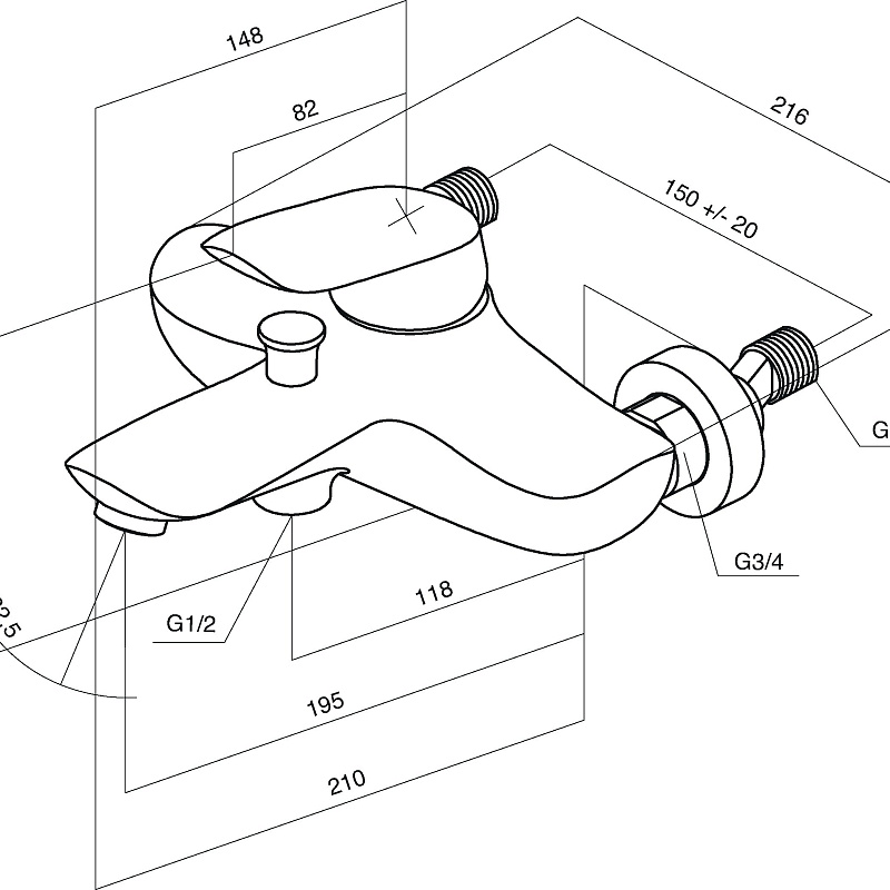 Смеситель для ванны и душа AM.PM Bliss L F5310032 хром