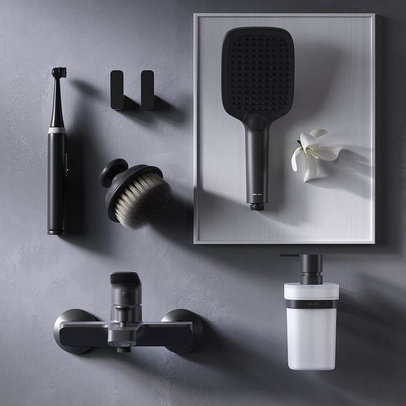 Гигиенический душ со смесителем AM.PM Func F0H8F922 черный встраиваемый, полка, шланг 1200, держатель туалетной бумаги