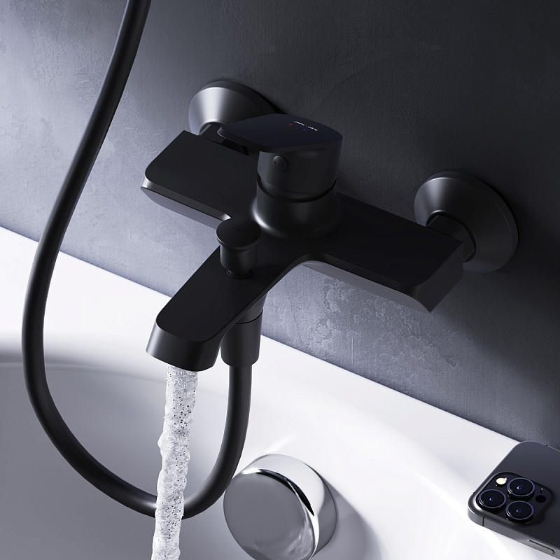 Смеситель для ванны и душа AM.PM Func - экстраординарное пополнение самой функциональной коллекции в линейке AM.PM. Премиальный дизайн смесителя разработан культовым немецким агентством Brandis. Точная инженерия для вашего комфорта: благодаря увеличенному диапазону хода ручки управление температурой воды стало ещё удобнее и плавнее. Размер (Ш/Г/В): 215x193x123 мм. Материал - латунь. Цвет - черный. Излив - статичный. Тип управления - однозахватный.
