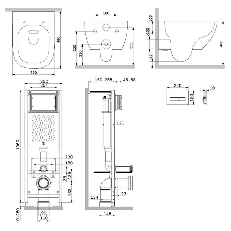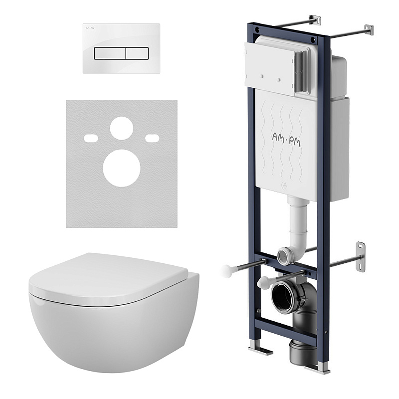 Унитаз подвесной безободковый с инсталляцией AM.PM Above IS110301.9X1900 сиденьем микролифт, белой механ. клавишей