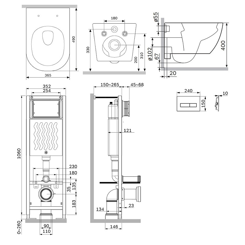 Инсталляция для подвесного унитаза бренда AM.PM коллекции ErgoFit с механическим управлением смыва включает в себя максимально полный комплект поставки: крепления, патрубки, звукоизолирующую прокладку, двухрежимную клавишу смыва. Подвод воды: Сверху универсальный (справа или слева). Размер инсталляции(Ш/Г/В): 352x150-265x1060-1320 мм. Размер клавиши (Ш/Г/В): 250x10x160 мм. Цвет и материал: синий каркас из нержавеющей стали, белый бачок из ABS-пластика, черная клавиша. Форма кнопок: круглые.