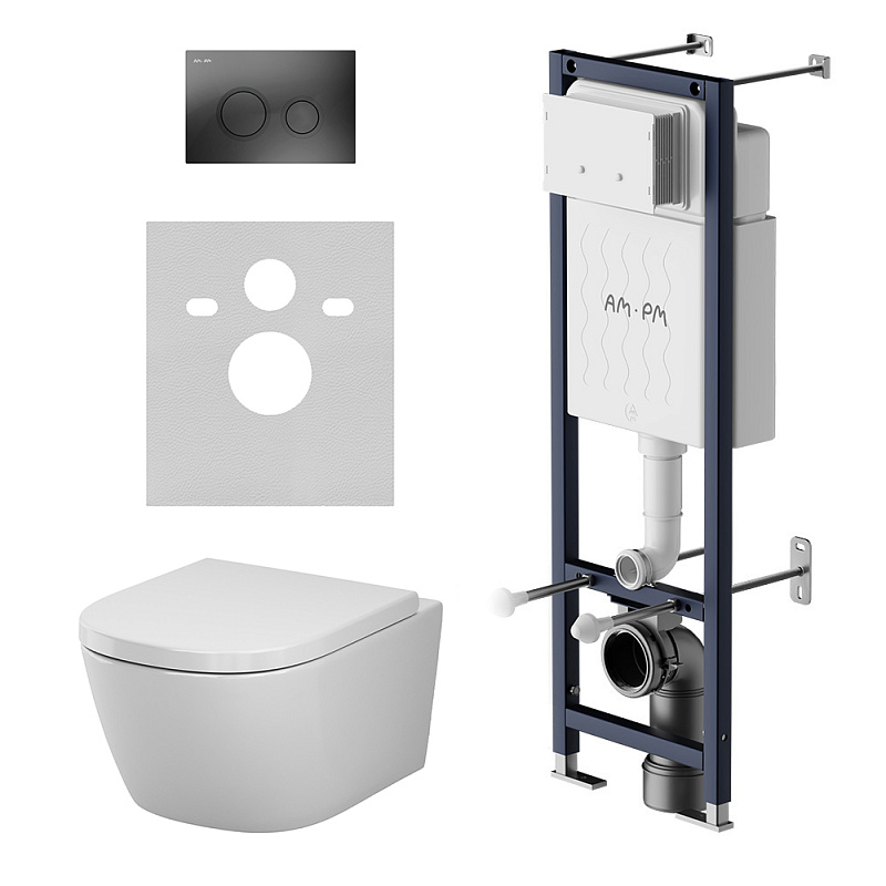 Унитаз подвесной с инсталляцией AM.PM Libre IS110138.601900 сиденьем микролифт, черной механ. клавишей