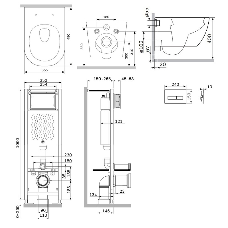 Унитаз подвесной с инсталляцией AM.PM Libre IS110338.601900 сиденьем микролифт, черной механ. клавишей