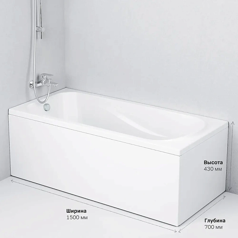 Прямоугольная ванна бренда AM.PM коллекции Force - модель, идеально подходящая для вашего интерьера. Размер изделия (Ш/Г/В): 1500x700x430 мм. Цвет – белый глянцевый. Материал - акрил.