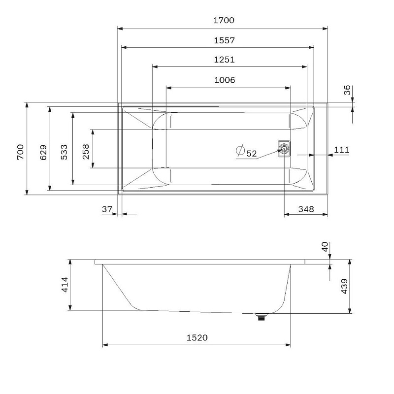Ванна акриловая 170x75 AM.PM Libre W60A-170-075W-A белая глянцевая